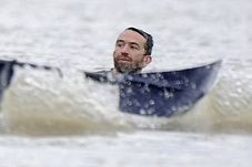 Cursa începuse de aproximativ opt minute, în momentul în care un bărbat îmbrăcat în costum de scufundări a început să traverseze înot Tamisa, ajungând până în fața bărcilor, chiar pe punctul de a fi lovit de ramele echipajului Universității Oxford.