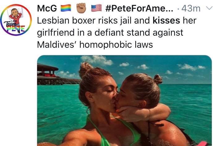 Sportiva, în vârstă de 24 de ani, este cunoscută ca fiind o susținătoare a mișcării LGBT. Pugilista a postat pe rețelele de socializare, zilele trecute, o fotografie în care se săruta cu partenera sa, alături de mesajul: „Ilegalitatea homosexualităţii în Maldive şi în alte ţări musulmane este, în ziua de azi, o adevărată nebunie”. Greșeala făcută de aceasta constă în faptul că poza a fost realizată în Maldive, țară în care homosexualitatea se pedepsește cu până la opt ani de înschisoare și 100 de lovituri de bici. De asemnena, în Maldive este strict interzis și consumul de băuturi alcoolice.