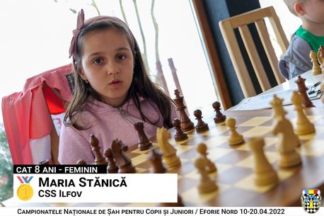 – Locul 1, Medalia de Aur și Campioana Națională a României la Șah Clasic – Fete 8 ani