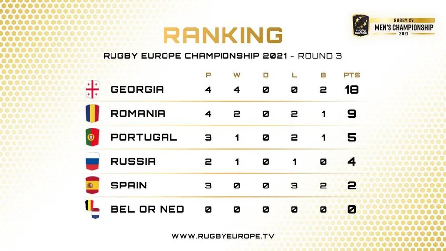 În primele etape ale Rugby Europe Championship, România a fost învinsă de Rusia, scor 18-13, şi s-a impus în faţa Portugaliei (28-27) şi Spaniei (22-16). Georgia a câştigat toate cele patru partide jucate în acest an: 29-16 cu Portugalia (deplasare), 25-19 cu Spania (deplasare) şi 23-6 cu Rusia (deplasare) şi 28-17 cu România (Tbilisi).