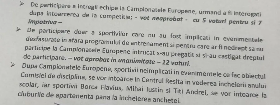 Dezvăluirile ProSport sunt confirmate de oficialii FR de Gimnastică, instituție care a trecut șa măsuri dure asupra recalcitranților: excluderea din lot și anchetarea lor de către Comisia de Disciplină.