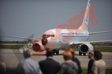 Sute de metri de cabluri, nu mai puțin de 23 de camere de luat vederi și o sută de ziariști făceau luni după amiază ca Salonul Oficial din Aeroportul Henri Coandă să pară mai mic decât de obicei. Reporterii obișnuiți cu inundații și revolte își fac temele, cum le cheamă pe fete, ce perfomanțe au obținut. Intră pe rând în direct cu o mare de buchete de flori în spate.