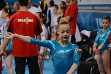 Trecem cu bine și de a treia rotație, Andreea și-a incheiat integralul la paralele cu o aterizare foarte bună, iar Laura Jurcă a prezentat o săritura cu nota de plecare 5.8, pe care a executat-o cu foarte multă siguranță, obținând o notă foarte buna – 14,733, care a propulsat-o în fruntea clasamentului. Evoluțiile fetelor noastre sunt însoțite de aplauze și de încurajări din tribună. În sală sunt arborate mai multe drapele tricolore, dar se remarcă și o galerie cât se poate de consistentă. Remarc în rândul celor prezenți chipuri cunoscute, sunt oameni pe care i-am tot văzut la concursurile de gimnastică, încurajându-le pe fetele noastre. De undeva, din spatele bârnei, urmăresc concursul fetele din lotul de senioare, alături de Octavian Belu și Adrian Stoica.