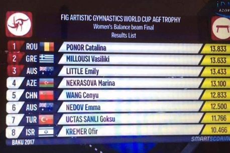 Fără a fi strălucite, notele sunt și rezultatul noului cod de punctaj, care a scăzut notele de plecare cu câteva zecimi. La feminin, România a mai fost reprezentată de Anamaria Ocolișan (19 ani), care nu s-a calificat în nicio finală pe aparate.