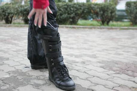 Imediat după operație a purtat o cizmă specială (foto mic), cu care