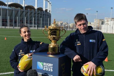 Poza de încălzire: Andreea, Ronan și Trofeul Webb Ellis, câștigat ultima dată de Noua Zeelandă