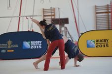 Trofeul Cupei Mondiale, Webb Ellis, a ajuns pentru a treia oară în România, cu doar șase luni înaintea Cupei Mondiale de Rugby ce va avea loc în Anglia. Un eveniment de amploare care programează în fiecare țară în care ajunge, în cadrul DHL Rugby vs. The World Challenge, un duel amuzant, unic, între rugby și sportul local, cel mai reprezentativ. România a fost gazda cele mai neobișnuite întâlniri, între rugby și gimnastică, sportul care ne-a adus sute de medalii de aur. O bătălie între două discipline sportive olimpice (rugby-ul se va întoarce printre sporturile olimpice la RIO 2016, în varianta rugby în 7 ), dar și un duel al sexelor.