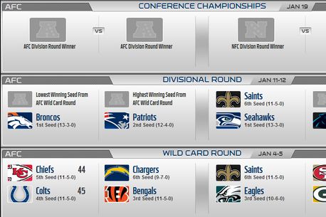 38-10 cu 28 de minute rămase de joc în favoarea lui Kansas City Chiefs. Acesta era scorul în Dome-ul din Indianapolis în primul meci al play-off-ului NFL din acest an. Jucătorii lui Andy Reid, care reveniseră în acest sezon după un 2012 catastrofal, în care au încheiat sezonul cu 2
