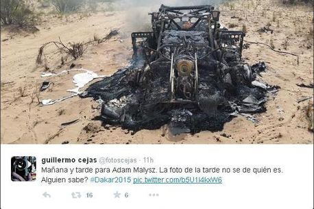Rămășitele mașinii lui Malysz la ediția 2015 a Raliului Dakar