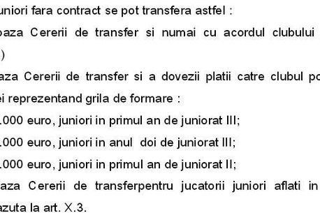 De menționat faptul că în regulamentul de transferări, modificat din această vară, se specifică faptul că un jucător junior fără contract se poate transfera astfel: