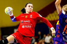Poland's Aleksandra Rosiak, center, in action during the IHF World Women's Handball Championship match between Poland and Romania, in Herning, Denmark on Tuesday, Dec. 11, 2023.,Image: 828624405, License: Rights-managed, Restrictions: This content is intended for editorial use only. For other uses, additional clearances may be required. No Use in Denmark DENMARK OUT MANDATORY CREDIT, Model Release: no