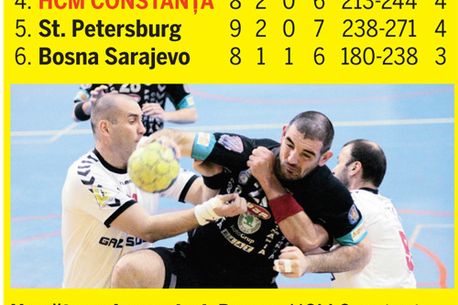 Campioana României la handbal masculin, HCM Constanța, a fost învinsă sâmbătă, în deplasare, de formația bosniacă HC Bosna Sarajevo, scor 23-24 (13-11), în penultimul meci din grupa D a Ligii Campionilor. Echilibrul s-a menținut doar 9 minute, până când HCM a preluat conducerea, 2-3. După alte 9 minute, campioana României avea deja trei goluri avans, 5-8, pe fondul unei apărări excelente, cu mingi recuperate, datorate și intevențiilor portarului Mihai Popescu. Diferența s-a mărit în minutul 24, 6-11, și 7-13 (min. 28), pentru ca la pauză să se înregistreze scorul 11-13, după ce HCM a primit trei goluri într-un minut, pe fondul unui joc impulsiv, de neînțeles pentru jucătorii lui Ion Crăciun.