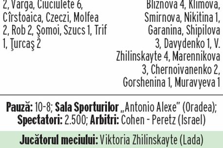 Jocul pregătit de Tadici a funcționat doar pe jumătate, adică pe faza de apărare. Zalăul a primit, așa cum și-a propus, mai puțin de 24 de goluri, având patru stâlpi de susținere care au rezistat la toate intemperiile: portarul Nichita (17 intervenții), Șomoi, Beșe și Ciuciulete, ultima anihilând-o pe jucătoarea meciului din tur, Irina Bliznova.