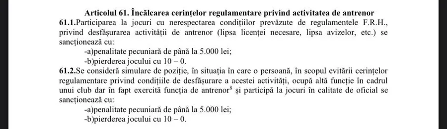 Articolul 61 vorbește foarte clar despre respectarea cerințelor privind activitatea de antrenor, mai ales că Borodi a stat pe bancă în cele 11 meciuri din acest sezon.
