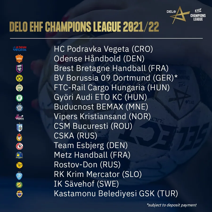EHF a mai anunțat azi că Vardar Skopje, calificată în principiu din oficiu, va participa numai în anumite condiții. Clubul din Macedonia de Nord trebuie să depună o garanție de 1 milion de euro în două tranșe până în 27 iulie. Depozitul va fi utilizat pentru a acoperi plățile care sunt solicitate de la club ca urmare a unor eventuale decizii legale. Mai mulți jucători nu și-au primit drepturile financiare la Vardar. Dacă formația din Skopje nu îndeplinește cererea EHF, va fi înlocuită la start de Gorenje Velenje (Slovenia).