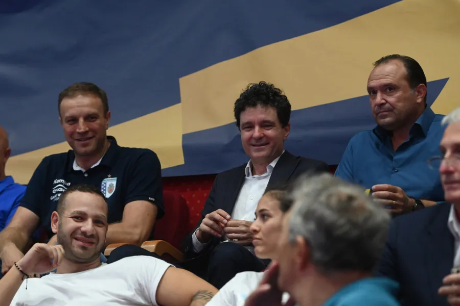 La pauză edilul s-a întreținut mai bine de 10 minute cu președintele FR Handbal, Constantin Din. La final, vizibil bucuros de victorie, Nicușor Dan a coborât pe parchet unde l-a felicitat pe antrenorul Adi Vasile, cu care a dialogat preț de câteca zeci de secunde.