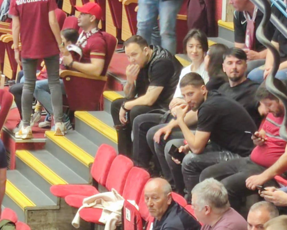 Nu departe de cei doi, cuplul Roxana Ciuhulescu – Silviu Bulugioiu, iar în tribunele bătrâne săli Polivalente, surpriză, și o jucătoare de la rivala CSM Buucurești, Omoregie.