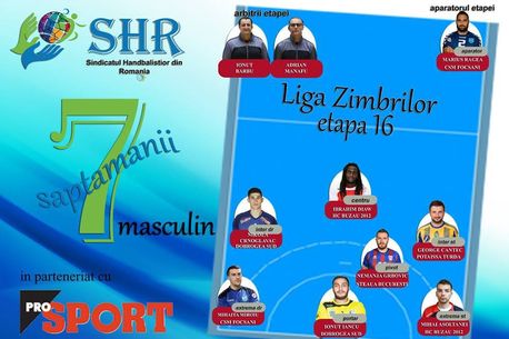 HC Dobrogea Sud Constanța și HC Buzău sunt marile câștigătoare ale etapei a 16-a a Ligii Naționale de handbal masculin, astfel că jucători din cele două formații s-au impus și în echipa ideală desemnată de Sindicatul Național al Handbaliștilor din România (SNRH) și ProSport.
