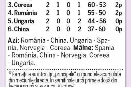 România bate China și Coreea, dar face egal cu Spania. În acest