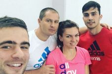Andrei Cristofor (ultimul din dreapta) și Teo Cercel (al doilea de la stânga la dreapta) se ocupă de pregătirea fizică a Simonei Halep.