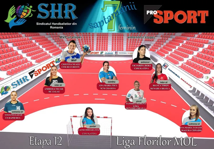 Sindicatul Handbaliștilor din România și ProSport au desemnat-o pe Cristina Neagu cea mai bună jucătoare a etapei a 13-a în Liga Florilor Mol, în urma contribuției și influenței pe care a avut-o în meciul de campionat cu Gloria Bistrița (28-25). De asemenea, Victorina Bora este antrenorul rundei, după succesul cu Minaur (scor 23-22), echivalent probabil cu menținerea în prima ligă fără a mai merge la turneul de baraj.