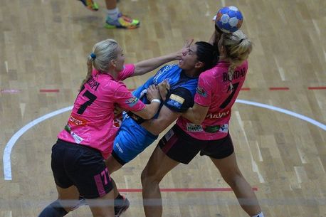 Campioana României a început tare jocul, dar pe parcursul întâlnirii a continuat să dea rateuri, în special în atacul pozițional, unde numai Line Jorgensen a reușit să marcheze goluri de la distanță. Absența suedezei Linnea Torstensson se simte mai mult decât s-ar fi crezut și în linia de 9 metri. Până la pauză, gazdele au marcat 3 goluri pe contraatac, 5 din aruncări de la 7 metri și două din extrema stângă din totalul de 14 goluri, cifre care indică anumite probleme la linia de 9 metri.