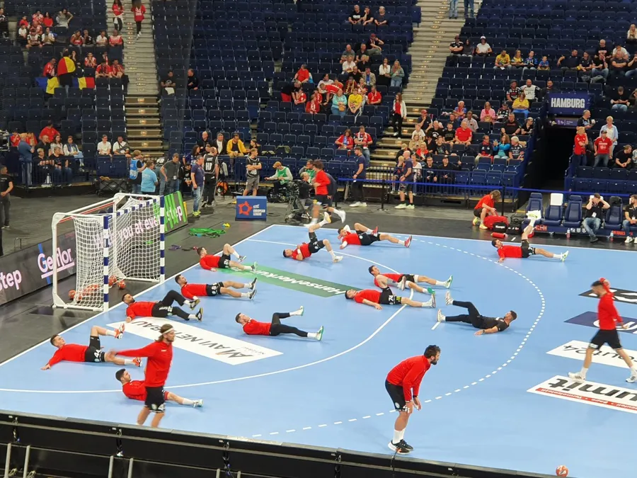 UPDATE 15:15: Jucătorii lui Xavi Pascual fac mișcările de încălzire și par extrem de conectați la ziua cea mare, având în vedere că trebuie să prindă o zi foarte bună pentru a face față grupării din Bundesliga.