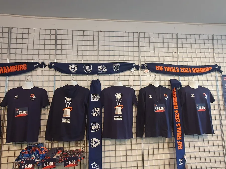 UPDATE 15:28: În afara arenei impresionante, suporterii pot cumpăra tricouri, fulare, ori hanorace dedicate evenimentului de la Hamburg.