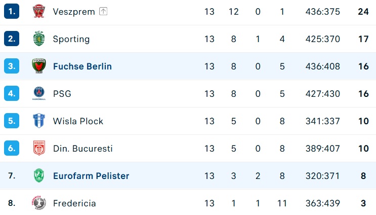 Cum Eurofarm a pierdut la zece goluri diferență cu Fuchse Berlin, Dinamo este sigură măcar de locul 6. Dar are șanse foarte mari să prindă și poziția a 5-a, în cazul în care se impune în fața celor de la Fredericia. Formația din Danemarca este ultima în grupă, fără vreo șansă să treacă mai departe.