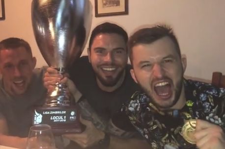 Handbaliștii dinamoviști nu au fost singurii care au parodiat momentul. După ce au cucerit titlul de campioană, nici cei de la CFR Cluj nu au uitat de mijlocașul celor de la FCSB.