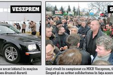 În jurul orei 15:00, cortegiul s-a oprit la Szeged. Adversarii tradiționali ai grupării Veszprem au depus flori lângă sicriu, iar cei 1.000 de fani prezenți au pus un banner: „RIP, Marian Cozma”, adică „Odihnește-te în pace, Marian Cozma”. Vali Ghionea, Adrian Petrea și Iulian Stamate, legitimați la Pick, plângeau în hohote, cu ochii pironiți în portbagajul care transporta trupul prietenului lor.