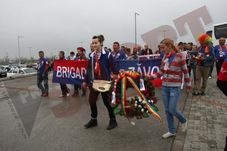 UPDATE 15:47 Peste 300 de suporteri ai Oltchimului au ajuns la Veszprem cu cel puțin două ore înainte de meci.Înainte de a intra în Arena Veszprem, fanii vâlceni au depus coroane de flori la statuta lui Marian Cozma, care este amplasat în imediata vecinătate a sălii și-au i-au scandat: „Te vom iubi mereu”