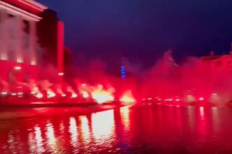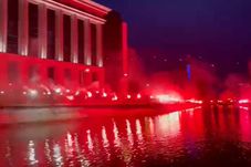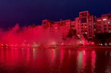 Suporterii Rapidului au aprins torțe de jur împrejurul râului Dâmbovița, în fața Bibliotecii Naționale și pe Splaiul Unirii.