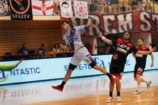 Iar interul stânga al Timișoarei a fost și principala „gură de tun” a Timișoarei în prima repriză. De fapt, în prima parte a jocului a fost un „concurs” al interilor stânga, pentru că și Dinamo a avut un handbalist în formă pe acest post, Ante Kuduz. Până în minutul 18, ambii jucători au marcat câte patru goluri, dar Dinamo a luat avans (scor 8-6), pentru că a avut și un inter dreapta la același nivel, Amine Bannour.