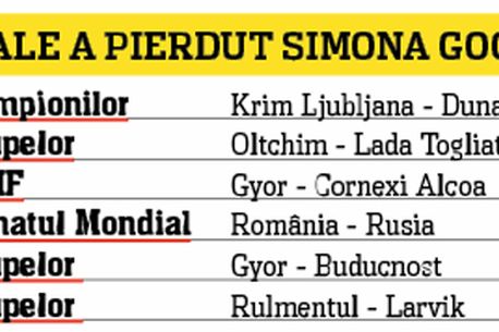 Șase finale disputate pe plan internațional, și tot atâtea pierdute, este un bilanț necruțător pentru Simona Gogârlă, o jucătoare care a evoluat peste 10 ani la cel mai înalt nivel.