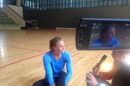 Isabelle Gullden, pe parchetul sălii Apollo, unde CSM București se antrenează
