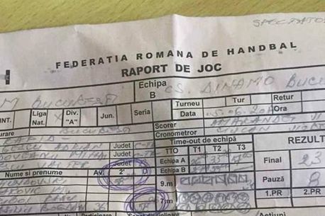 Conform acestei teorii, CSM București a evoluat din minutul 58:22 cu un om în plus pe teren până la sfârșitul jocului! Dinamo a pus la dispoziția ProSport foaia de joc, documentul oficial al întâlnirii, din care reiese faptul că echipa gazdă a primit două eliminări în minutul 58:22: una la bancă pentru Zvonko Sundovski și alta pentru managerul Bogdan Vasiliu, care a și fost descalificat!