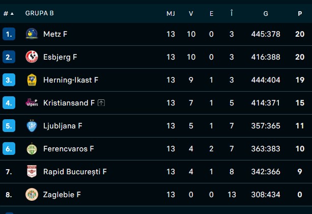 Spre deosebire de fotbal, toate meciurile sunt în zile diferite și nu la aceeași oră. Interesant e că Rapid trebuie să treacă de Ferencvaros în clasament.