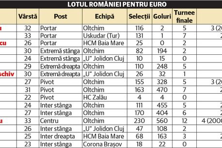 România – Curea 9 goluri, Geiger 3, Meiroșu 2, Stanca 2, Nechita 2, Brădeanu 1, Neagu 1, Manea 1