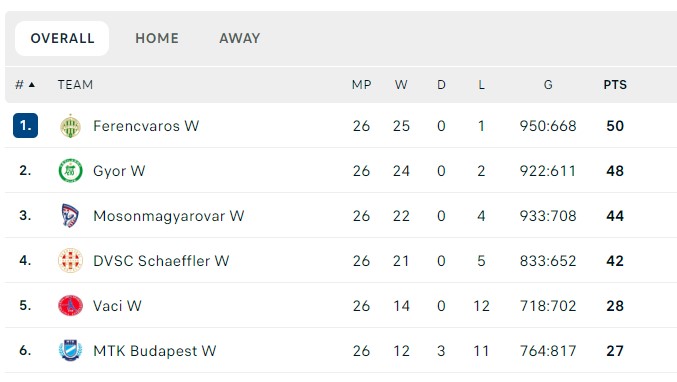 Debrecen, care a făcut o figură excelentă în sezonul trecut de Champions League, a terminat pe locul 4 în Ungaria. EHF nu putea trimite locul 4 la această competiție, așa că ar fi luat în calcul locul 3 ocupat de Mosonmagyarovar. Dar aceștia nu au cerut wildcard la forul european.
