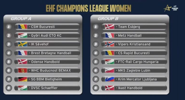 Tragerea la sorți pentru EHF Champions League faza grupelor a avut loc marți după-amiază la Viena. Rapid și CSM București și-au aflat adversarele. Rapid, grupă de foc în Liga Campionilor la handbal feminin! Va întîlni ambele finaliste ale competiției. Cu cine se va duela CSM București Rapid va da piept în grupa B cu Vipers … Continuă lectura Rapid, meciuri de foc în Liga Campionilor la handbal feminin! Se va bate în grupe cu ambele finaliste ale competiției. Cu cine se va duela CSM București