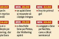 A fost doar iluzia unui început semi-echilibrat (1-3, m.8). Pentru că nemțoaicele ne-au oprit rapid din goana după palpitații. (5-9 m.17). Printr-o apărare agresivă, care l-a făcut pe Tadici să schimbe continuu la linia de 9 m (a marșat pe trioul Meiroșu – Brădeanu – Neagu, dar le-a introdus pe parcurs și pe Geiger și Vădineanu) și printr-o ofensivă în care au impresionat roboțelele de la 9 m Steinbach – Nadgornaja – Wohlbold (5-10, m.20, 8-13, m.25). Mai presus de toate însă, Germania a excelat la capitolul poartă. Dacă s-ar fi antrenat cu Sorin Babii sau cu Alin Moldoveanu, fetele n-ar fi fost așa de precise. Ținta s-a numit aseară Clara Woltering. Portarul lui Buducnost. O tipă parcă tunsă de colega ei, rockerița-frizeriță Anja Althaus. În primele 20 de minute n-a luat decât cinci goluri (55 % – 6 mingi apărate din 11). Și astfel, lipsa de luciditate din atac și jocul superficial din defensivă au făcut ca tabela să clipească la pauză 9-16. Un ecart imposibil de surmontat în partea a doua a meciului, când România a părut că revine în joc (14-18, m.40), grație paradelor Talidei Tolnai și sclipirilor Clarei Vădineanu .