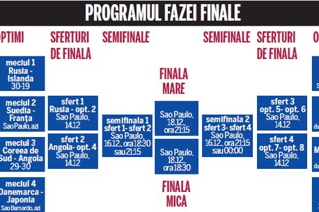 Rusia și Angola și-au asigurat aseară biletele pentru sferturile de finală ale Campionatului Mondial și mai au un pas de făcut pentru a evolua cu medaliile pe masă. Dacă Rusia n-a avut probleme cu Islanda, scor 30-19, în schimb, Angola, surpriza Mondialului până acum, s-a calificat dramatic în dauna Coreei de Sud, cu 30-29. Cele două reprezentative au mers cap la cap până aproape de final, când africancele s-au desprins în câștigătoare.
