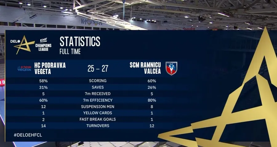 SCM Râmnicu Vâlcea a spart gheața în Liga Campionilor! Echipa noastră a obținut astăzi primul succes, la Koprivnica, 27-25 (15-13) cu Podravka.