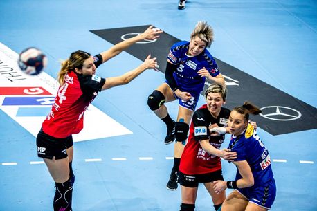 Echipa vâlceană a început excelent jocul şi cu portarul Isabell Roch în formă, a condus cu 3-0, 10-4 şi 15-10 (min. 21). Din acel moment, însă, echipa pregătită de neamțul de origine română Herbert Muller a preluat controlul partidei și a întors rezultatul până la pauză: 19-16.