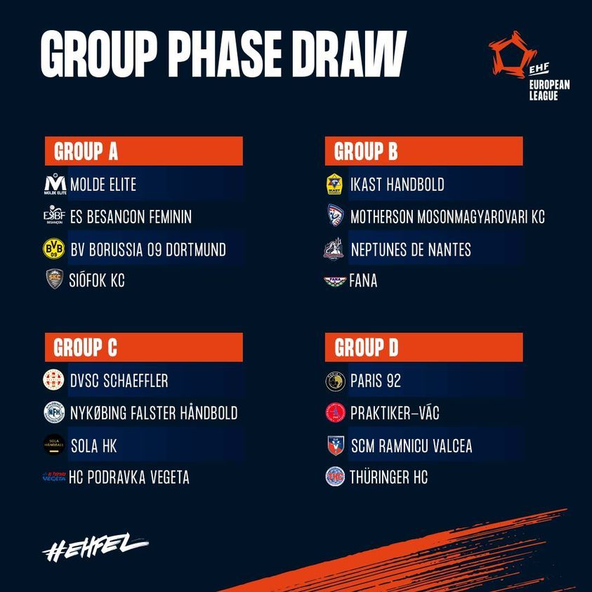 Ikast Handbold (Danemarca), Paris 92 (Franța), DVSC Schaeffler (Ungaria) și Molde Elite (Norvegia) au fost calificate direct în faza grupelor și au fost capi de serie la tragerea la sorți. SCM Rm. Vâlcea a fost repartizată în urna valorică 3.