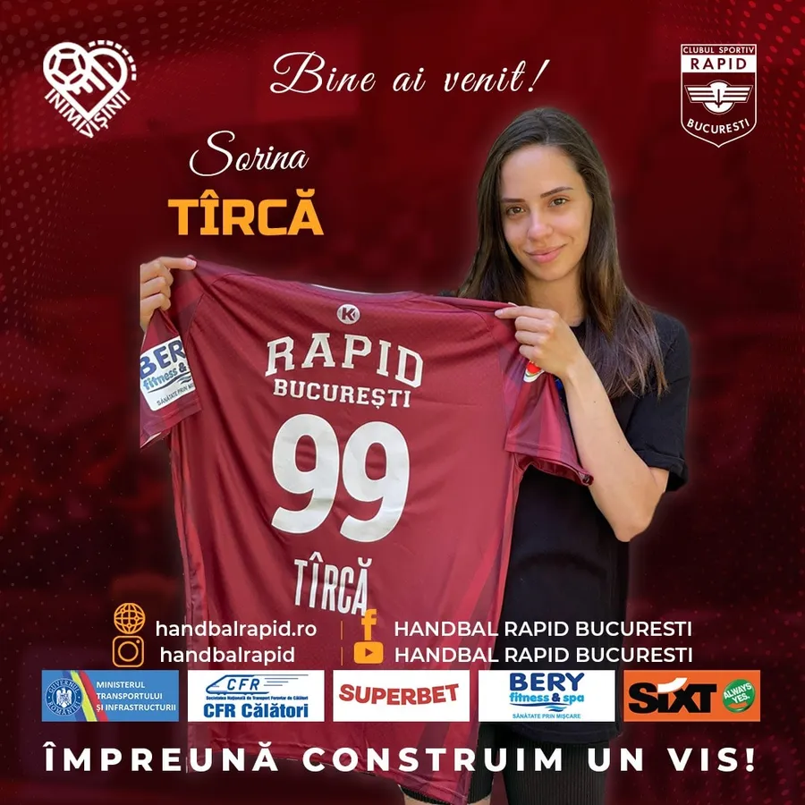 „Suntem fericiți să vă anunțăm că începând cu acest sezon Sorina Tîrcă s-a alăturat visului nostru. Ne-am dorit foarte mult ca una dintre marile speranțe ale handbalului românesc să ajungă în familia Rapid. Cu multă muncă și răbdare suntem siguri că va fi unul dintre liderii naționalei României”, a anunțat clubul Rapid pe pagina oficială de Facebook.