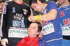 Mergând pe modelul forbaliștilor de la CFR Cluj, care l-au tuns zero pe președintele Iuliu Mureșan după ce au câștigat titlul și „militarii“ au pus mâna pe mașina de tuns. „Victima” a fost antrenorul Dumitru Berbece, renumit pentru podoaba lui capilară încă dinainte de 89.