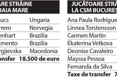 CSM București și HCM Baia Mare, echipe cu obiective importante în Liga Campionilor în anii ce vor urma, și-au creionat o strategie și cu ajutorul unor handbaliste de top din Europa. Altfel nici n-ar avea șanse să acceadă în fazele superioare ale competițiilor având în vedere că ar intra în luptă directă cu adevărate selecționate mondiale. HCM Baia Mare posedă în prezent cinci jucătoare străine și intenționează să mai transfere cel puțin una. CSM București stă chiar și mai bine la aceast capitol. Echipa pregătită de daneza Mette Klit a achiziționat deja șapte fete de la naționale de prim rang. Astfel, la legitimarea acestora în vară, gruparea bucureșteană va achita taxe în valoare de 78.500 de euro. În urmă cu ceva timp, CSM București anunța că va avea în sezonul următor opt handbaliste străine și dacă nu va renunța la această idee va fi nevoită să mai plătească alți 80.000 de euro pentru următorul transfer.