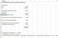 O privire aruncată pe celelalte cheltuieli din listă produce stupoare. Gerard Al pretinde un tarif de 40 de cenți pe kilometru pentru 9 deplasări cu mașina sa făcute cu Ionela Gherman. Două drumuri la Amsterdam, 7 drumuri la Hoorn și unul la un McDonalds! În total, 426 de kilometri. Aplicând tariful lui Gerard Al, jucătoarea datorează clubului 170,40 euro.
